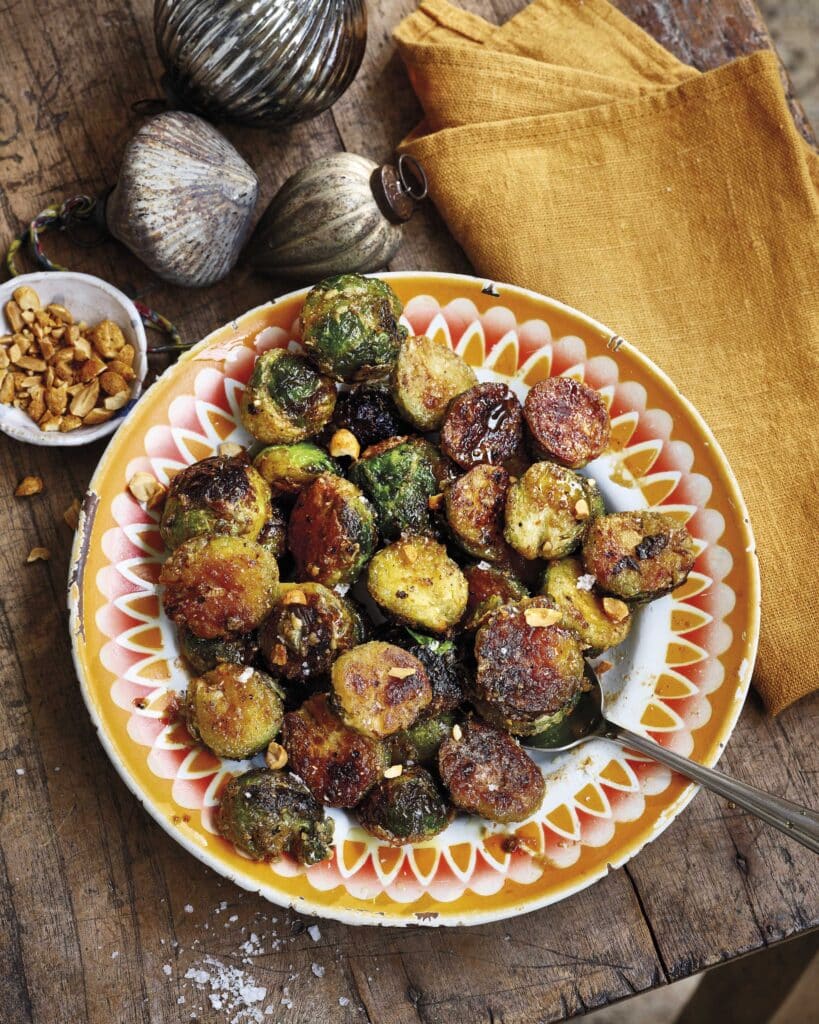 Place a wok or large frying pan over a medium heat and add the oil. When the oil is hot add the sprouts. Allow them to fry until they’re crispy & golden. Then add the sauce & toss for 2-3 minute until sprout has been glazed.